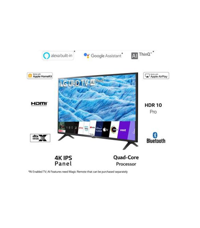 [vc_row][vc_column width=”1/2″][kapee_heading title=”Description”][vc_column_text]The LG Ultra HD LED Smart TV comes with a 4K IPS display that lets you enjoy your content in its finest details. With a wide viewing angle that lets you enjoy the action from any angle, the television also comes with a 4k Active HDR feature that enhances your content with stunning resolution and bright colours. The television?s wireless connectivity, content store and many more innovative features are bound to keep you entertained.[/vc_column_text][kapee_heading title=”Specifications”][vc_column_text]