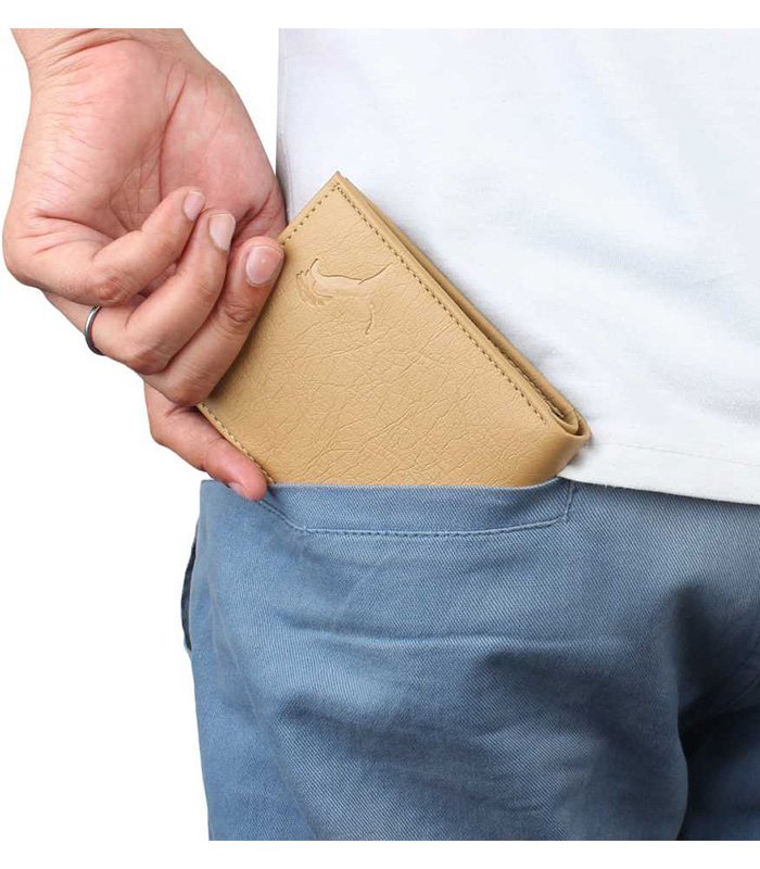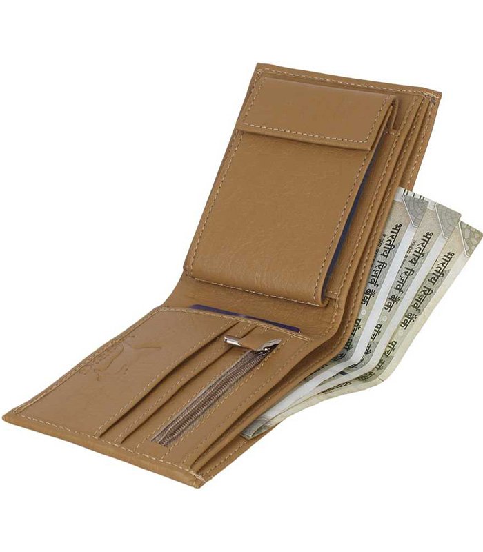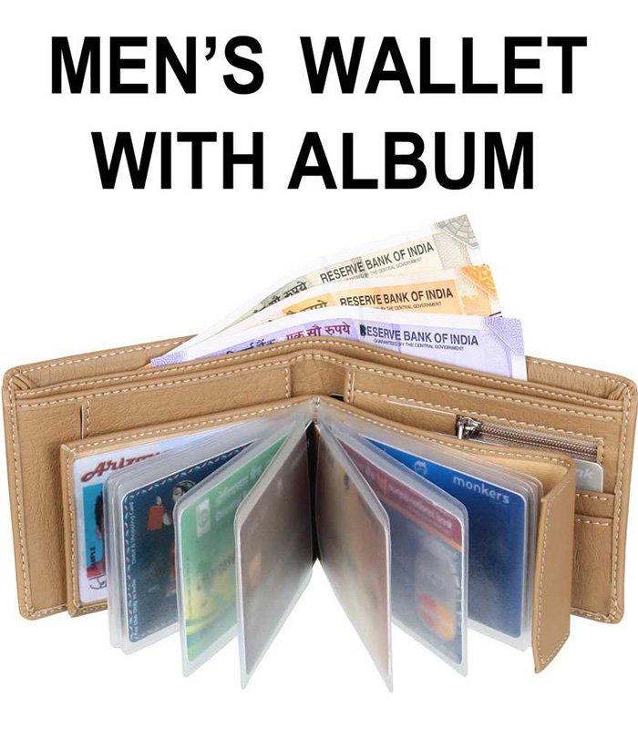 Men Beige Artificial Leather Wallet (9 Card Slots)