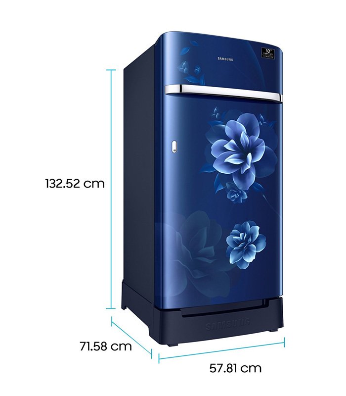 Samsung 198 L Direct Cool Single Door 5 Star Refrigerator with Base Drawer (Camellia Blue, RR21T2H2WCU/HL)