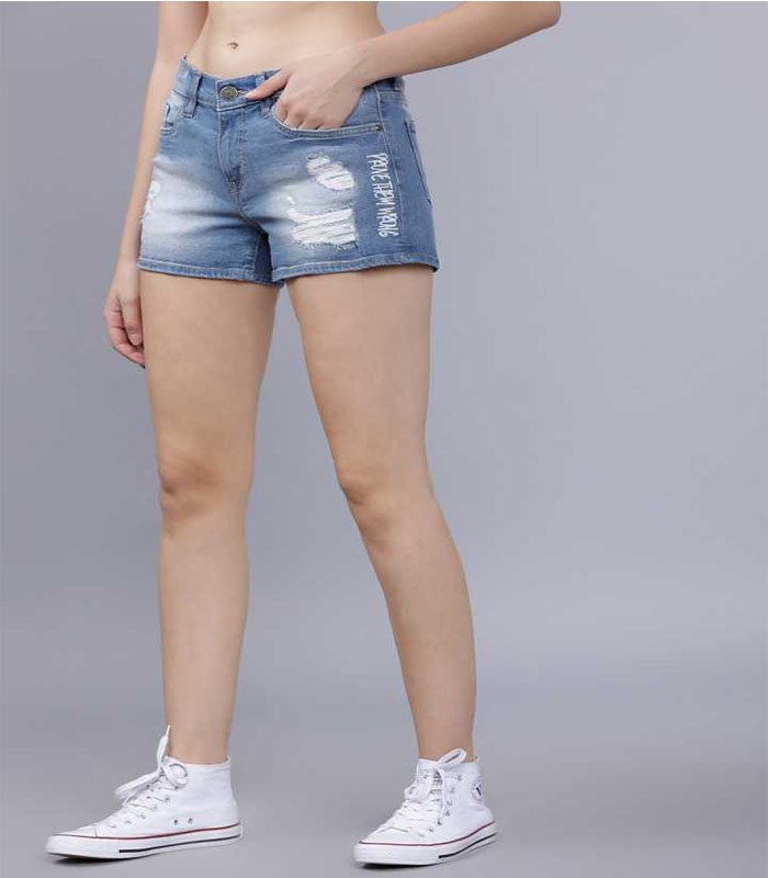 Tokyo Tallies Washed Women Blue Regular Shorts